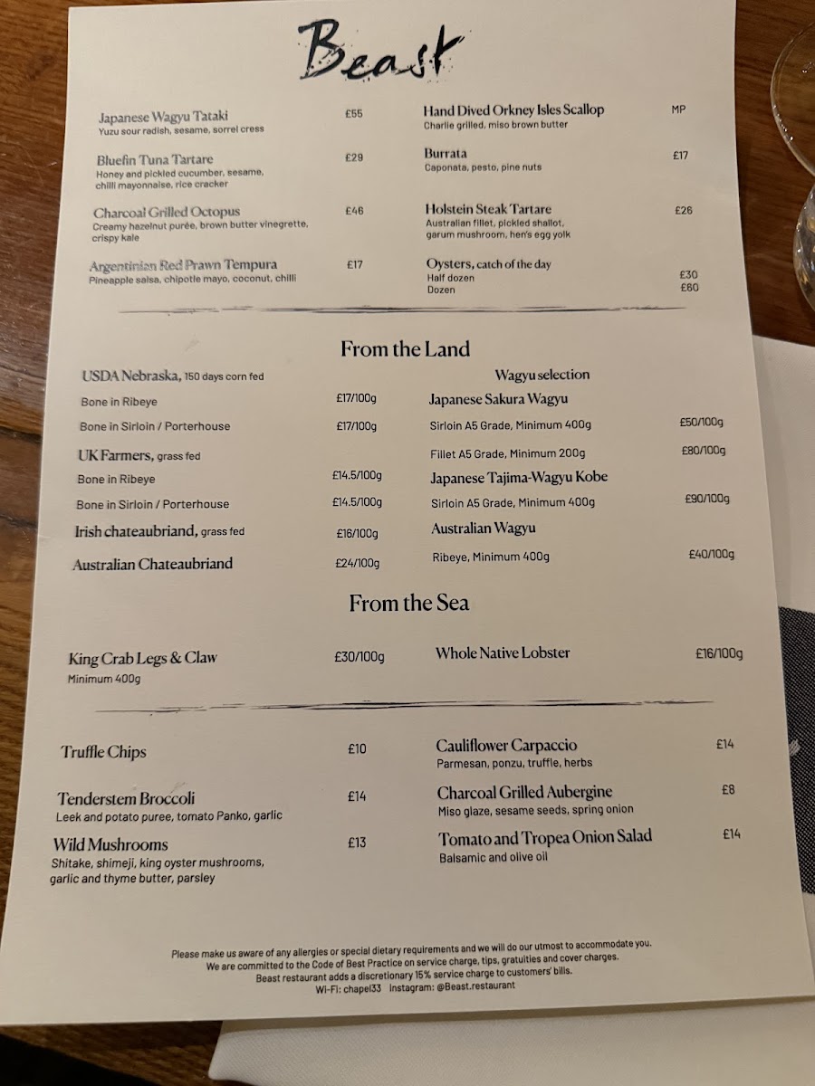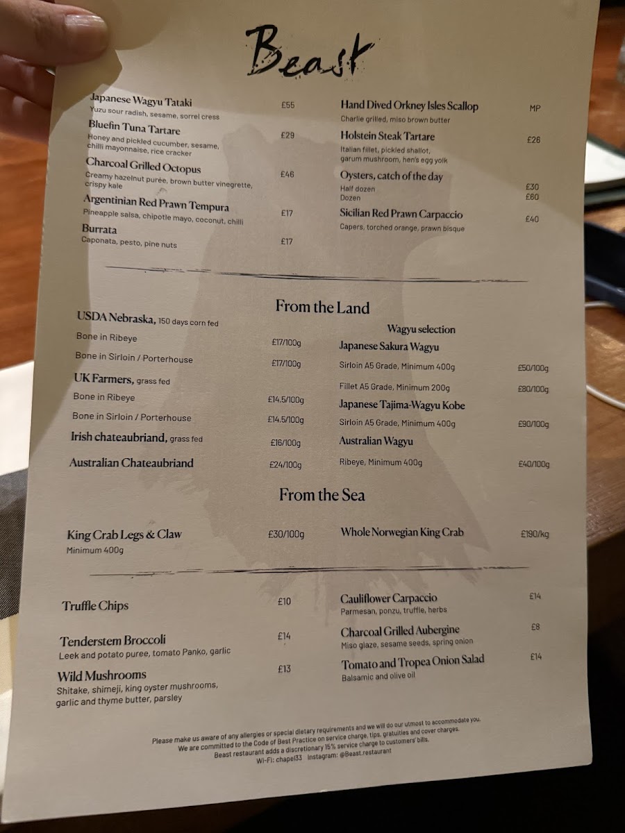 Beast in London elevates steakhouse dining with a superb blend of prime meats and fresh seafood, all served in an elegant, Tudor-inspired setting. The menu showcases standout dishes like Japanese Wagyu Tataki, bursting with yuzu and sesame notes, and the melt-in-the-mouth Orkney Isles scallops grilled to perfection with miso brown butter. Seafood lovers will relish the Argentinian Red Prawn Tempura, paired with pineapple salsa and chipotle mayo, while char-grilled octopus offers a creamy, smoky burst alongside borlotti beans.